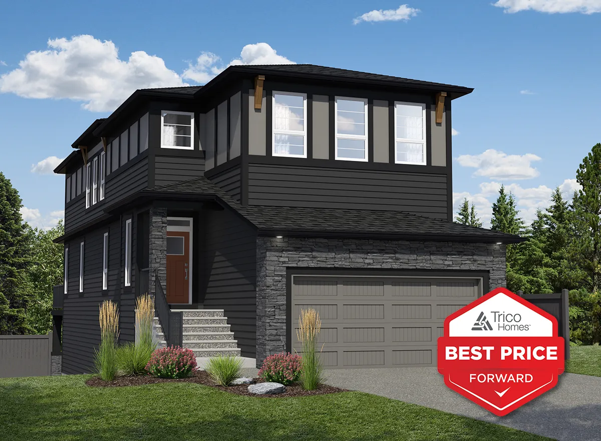 The Lawson features an open main floor with expansive windows that fill the home with light. The main level includes a flex room, a main floor bedroom, and a full bathroom— perfect for short-term guests or large families. Upstairs, a central bonus room and open-to-below create added connection, while the owner’s suite includes a large five-piece ensuite with a soaker tub, separate shower, and dual sinks, leading into a walk-in closet.